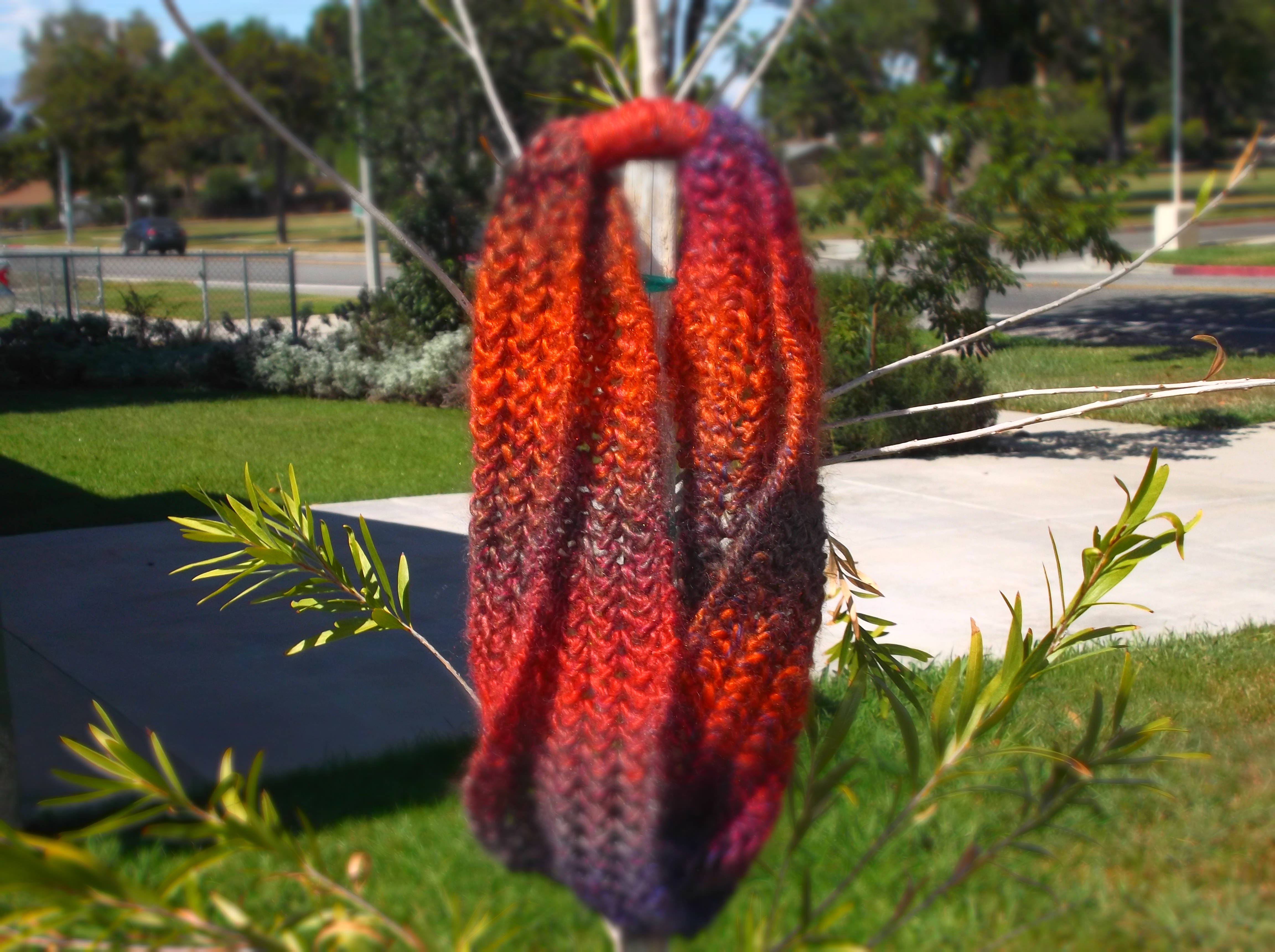 The colors looked awesome and when cooked they became even richer in color. I remembered that I had some left over yarn that looked similar. That’s when I created an easy cowl that I named Side Dish.